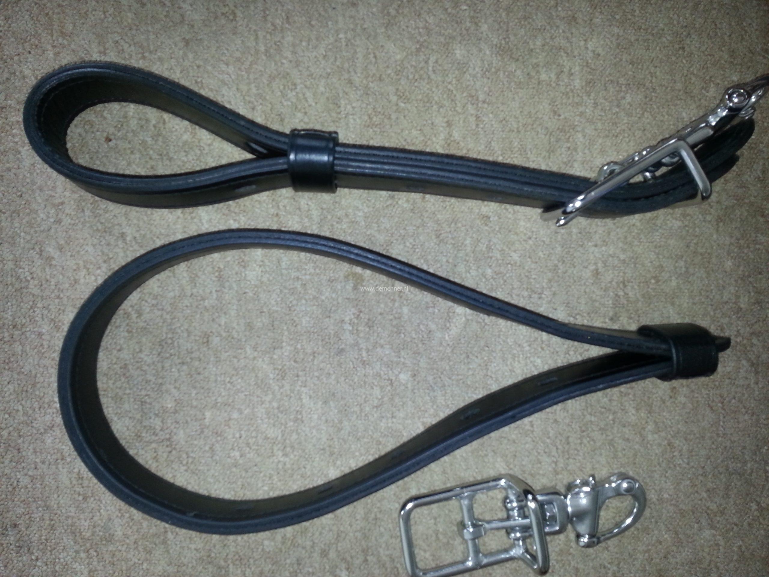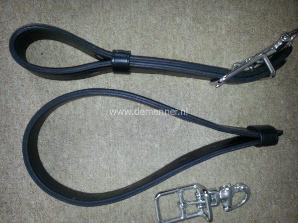 Leren disselriemen met losse panieksluiting.