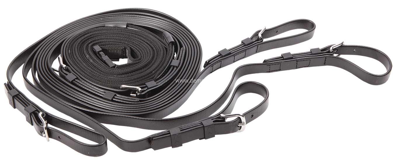 Das sorgfältig gefertigte Geflecht im Handbereich „Supergrip” enthält einen gummierten Faden, der bei allen Wetterbedingungen für guten Halt sorgt. Das Gewicht und das Gefühl der Leinen sind auf optimalen Komfort in den Händen des Fahrers ausgelegt.